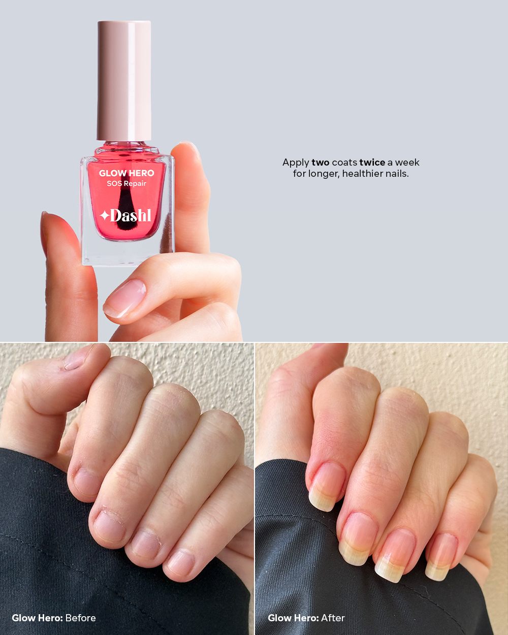 Weak, dry, and dull nails? Glow Hero SOS Repair is your go-to solution! This intensive treatment nourishes and strengthens nails, giving them a glowesome boost they’ve been missing. Ideal for in-between manicures, it restores and rejuvenates your nails while locking in moisture, leaving them looking healthy, shiny, and radiant in one single step.
