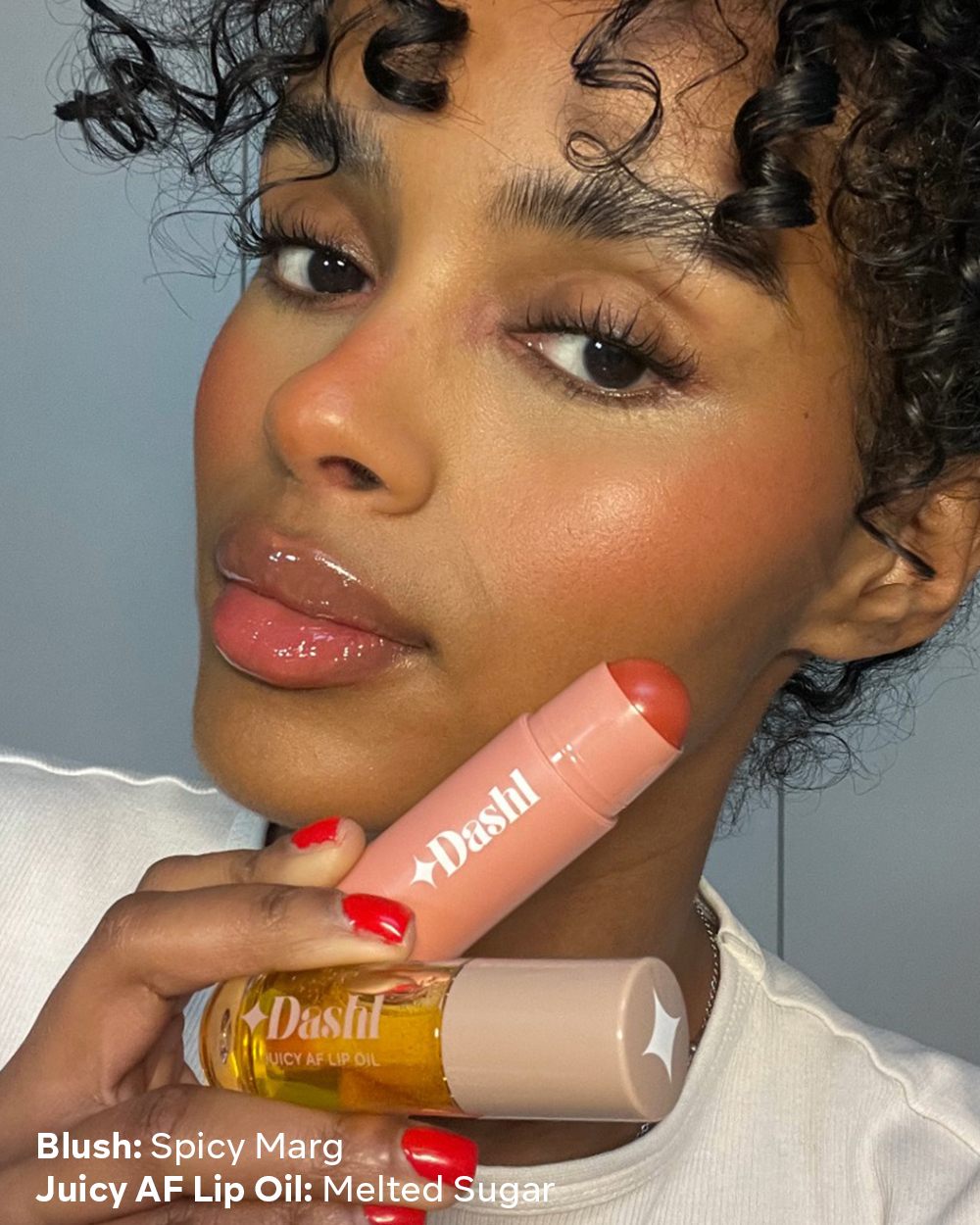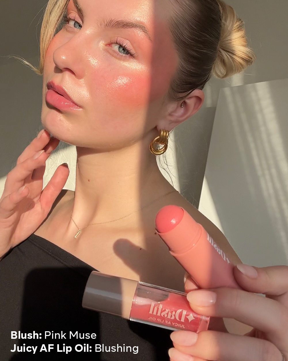 The ultimate glow duo! A creamy, sun-kissed blush stick paired with a glassy, non-sticky lip oil for an effortless dewy look.