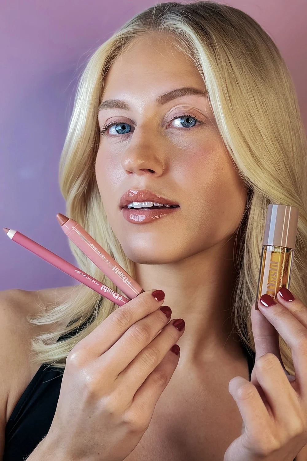 Lip Fusion Serum: Gardenia Pink, Read My Lip Liner: Dolce Vita, Juicy AF Lip Oil: Blushing